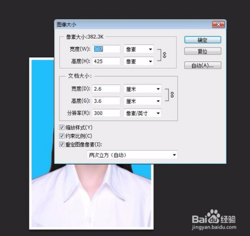 第三步:在菜单栏“图像”中选择“图像大小”,看一下加了白边之后图片的尺寸。