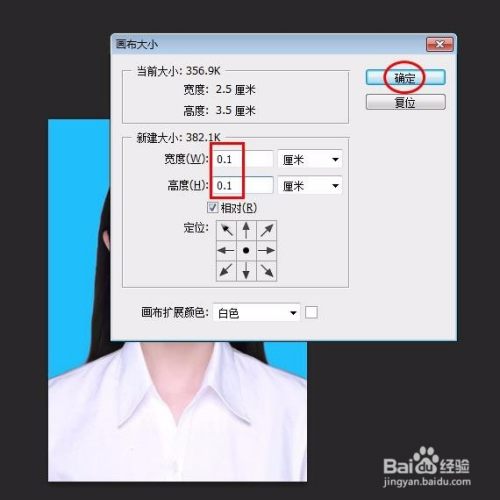 第二步:在菜单栏“图像”中选择“画布大小”,给照片添加一个0.1厘米的白边。