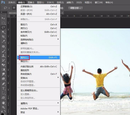 第五步:在菜单栏“编纂”中选择“填充”。
