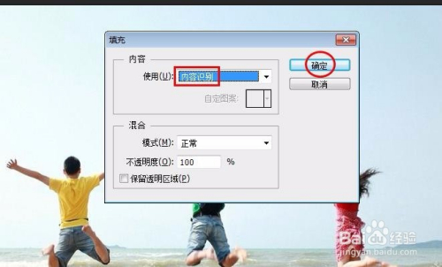 第六步:填充体例选择“内容识别”,单击“确定”按钮。