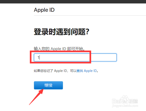 输入Apple ID,点击继续。