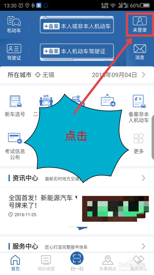 在交管首页,点击顶部右边的未登录。如图所示