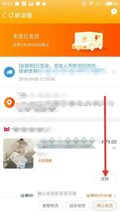 进入订单详情页面,点击“退换”