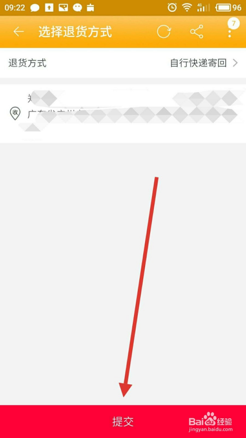 如许就商家何处就会显示一个退货地址,直接按照这个退货地址退回就可以了,点击“提交”即可。