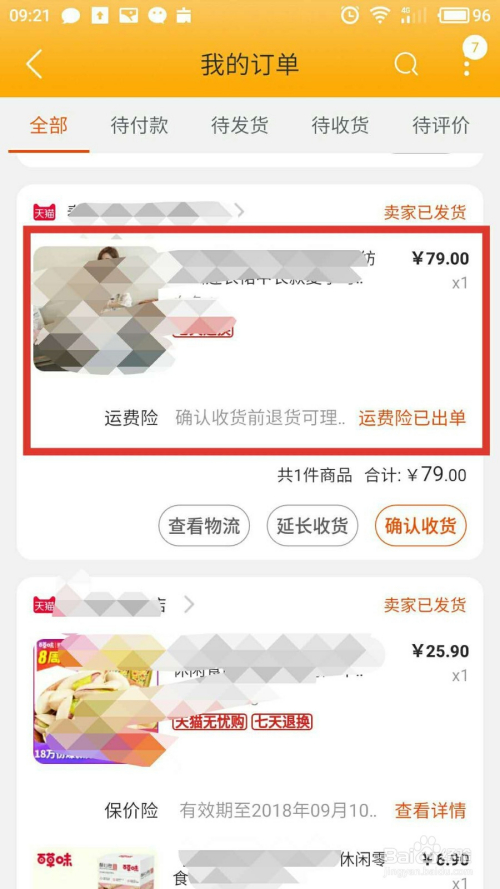 在全数订单页面,找到本身想要退货退条目的订单,点击进去。