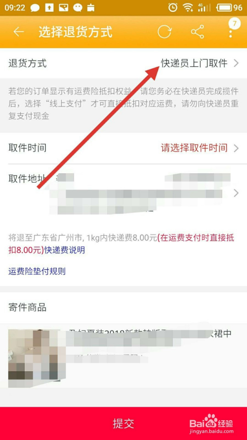 在退货体例页面,可以选择快递员上门来取件,也可以选择本身邮寄快递。