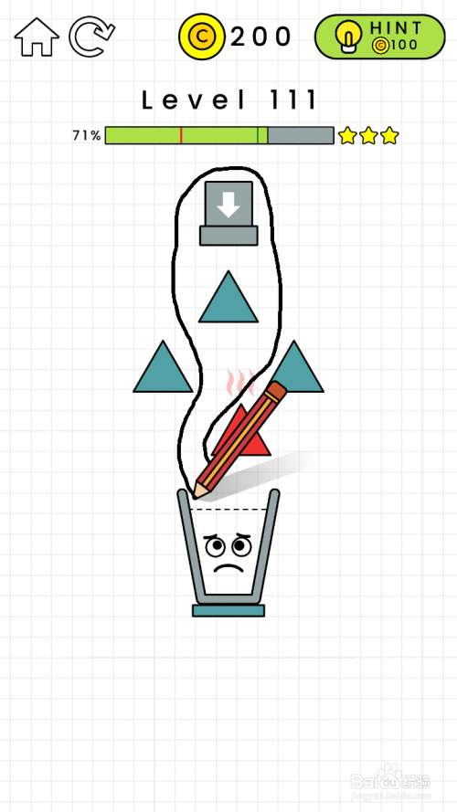第111关按照下图中所画线条来画线就可以或许过关。若是无法过关,就多试几回。