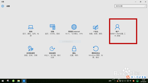 第二,在第一行最右边找到:账户,你的账户,同步账户,家庭设置等等,点击一下。