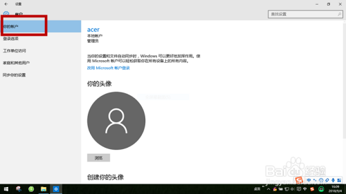 第三,右侧有一竖排项目,本身找到:你的账户一项。点击一下,进入下一个项目。会呈现:当地用户,办理员。点击一下。