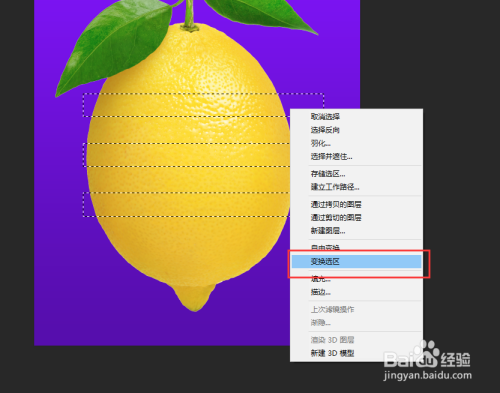 选中柠檬拷贝图层,按键盘上的delete键删除选区部门的内容,然后在按快捷键Ctrl+D打消选区。如许,我们就当作功的操纵柠檬素材图做当作了一个镂空的柠檬结果。