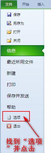 1、打开Excel表格,选择”文件“菜单,在扩展栏中找到”选项“并点击。如图所示: