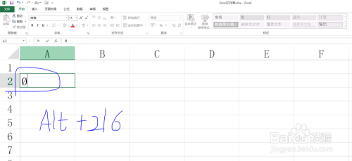 b.然后按下组合键Alt+216(小键盘处的数字),即按住Alt键不松,依次按下小键盘处的数字2,1,6。