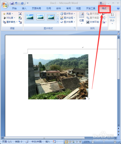 选中要处置的图片后,单击菜单栏的“格局”