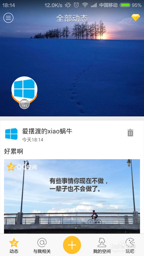 首先,请大师将本身手机上的QQ空间应用更新为最新版本,然后登录本身的QQ账号,打开QQ空间手机版应用本家儿界面。