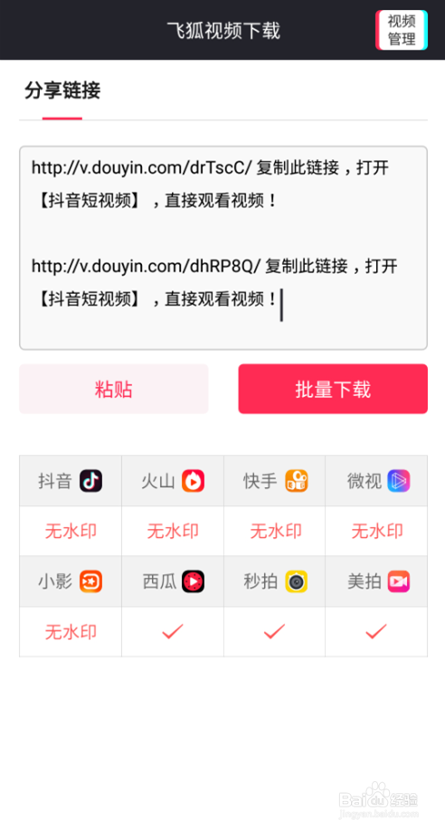 复制好链接今后打开飞狐下载器,点击粘贴,然后下载就可以获取无水印的视频了。