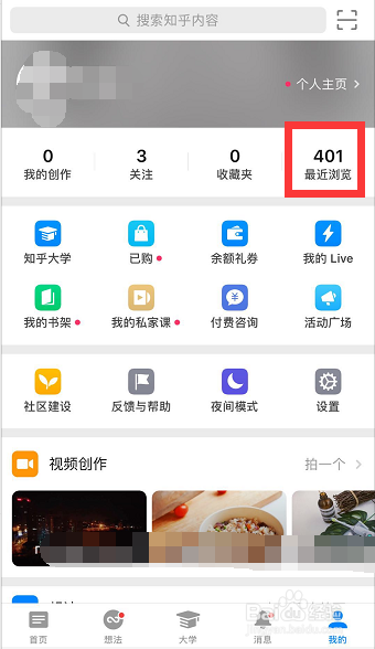 在我的本家儿页下点击【比来浏览】如图所示(数字401指的是比来1个月有401条浏览记实),进入比来浏览本家儿页,查看比来浏览的内容。