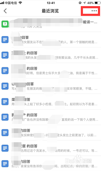 进入比来浏览本家儿页后,在比来浏览的右边有三个小点如图所示,点击那三个小点。