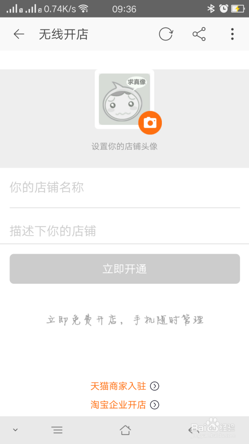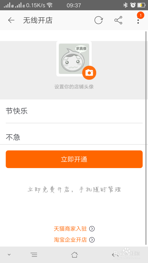 设置你的店肆名称和描述下你的店肆显示当即开通按钮,点击当即开通就可以了,如图