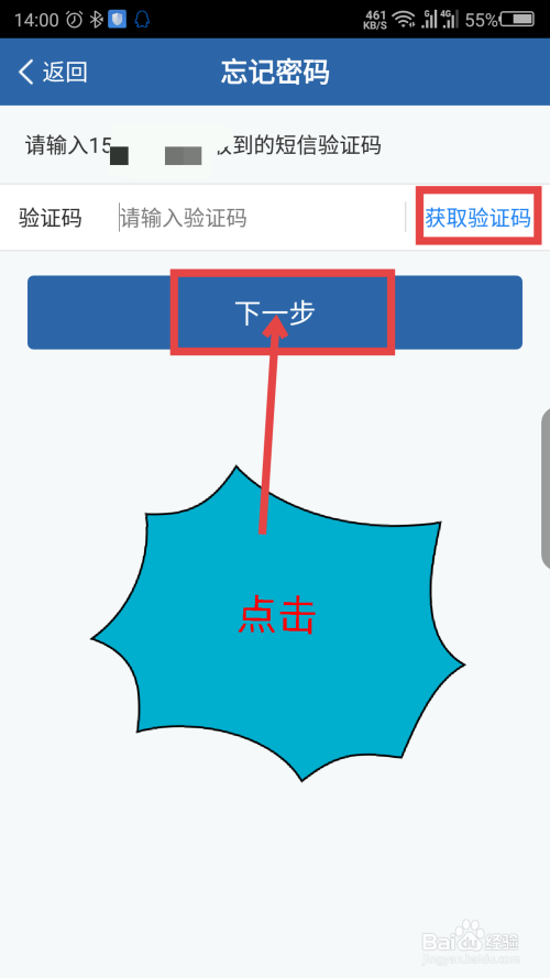 点击获取验证码,绑定的手机号会收到短信,输入后点击下一步。如图所示