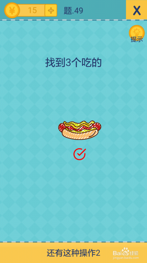 第49关第3个吃的工具在右边,滑脱手机找到后点击3个吃的就过关了。