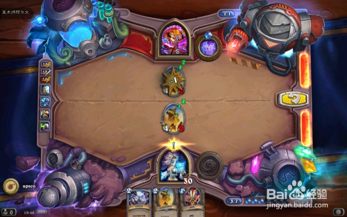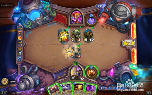 7.打出2张手中牌“火球术”,方针别离已方“年夜法师安东尼达斯”、敌方右侧“巫师学徒”。