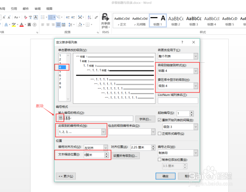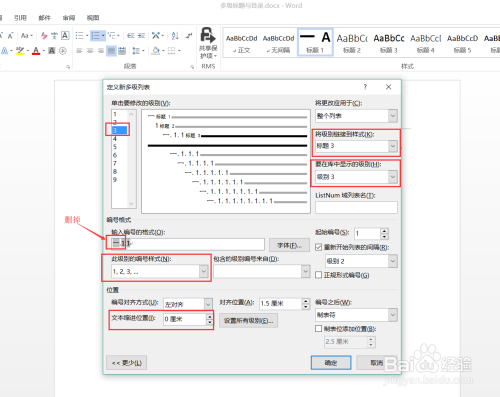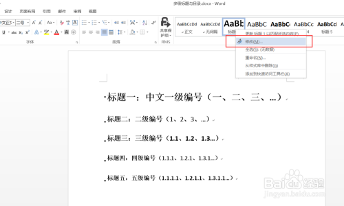 设置好各个题目的格局后,同一对其设置多级编号: