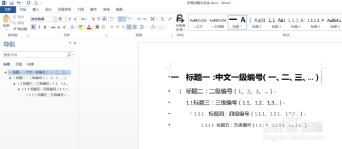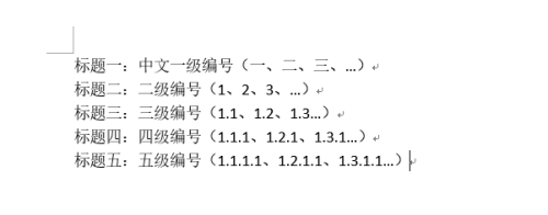 在word文档中,我们想要设置五级题目,结果如图所示。