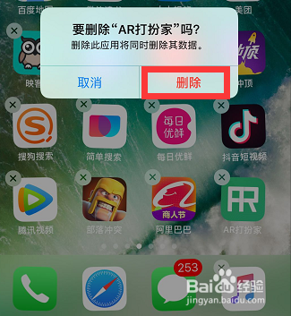 点击删除后APP删除当作功,按home键屏幕恢复正常!