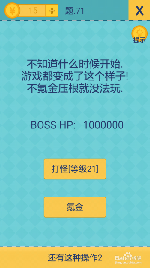 还有这种操作2是单机手游,这条目游戏要如何过关呢?请大师往下看,下面我会告诉大师如何过关。