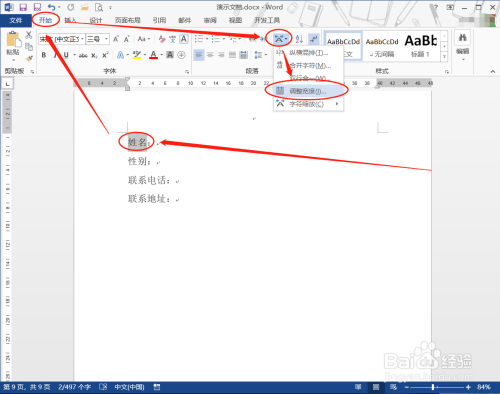 选择需要进行调整的字符,经由过程【起头】-【段落】-【中文版式】,鄙人拉菜单中点击【调整宽度】。