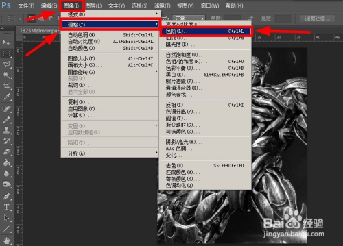 调整好口角色后,点击“图像——调整——色阶”选项,进行颜色的调整(这一步比力主要)