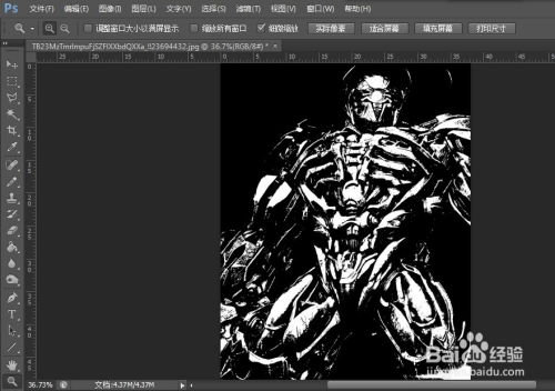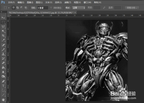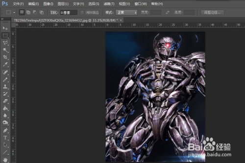 首先打开PS CS6,导入一张图片素材,这里小编以变形金刚为例