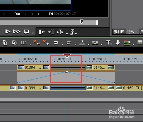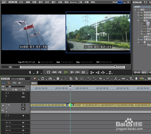 打开EDIUS,让需要转场的两头素材首从头至尾相接。