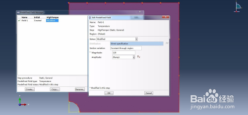 为了实现温度的转变环境,我们需要点击第3步中成立的载荷步,点击modified,然后将该载荷步下的温度改为120℃