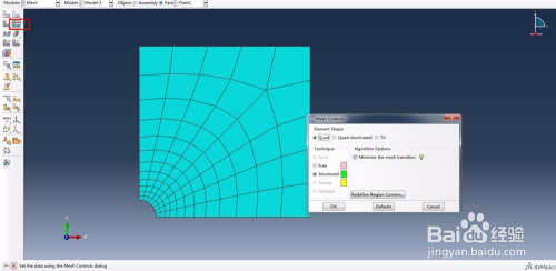 在mesh模块进行网格划分,采用布局化的四边形网格,划分完网格之后就可以进行阐发了