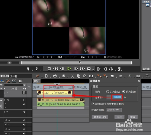在EDIUS中,倒放的快捷设置体例是设置播放速速“ALT+E”,记得在速度前面加上负号。-100就是完全的倒放。