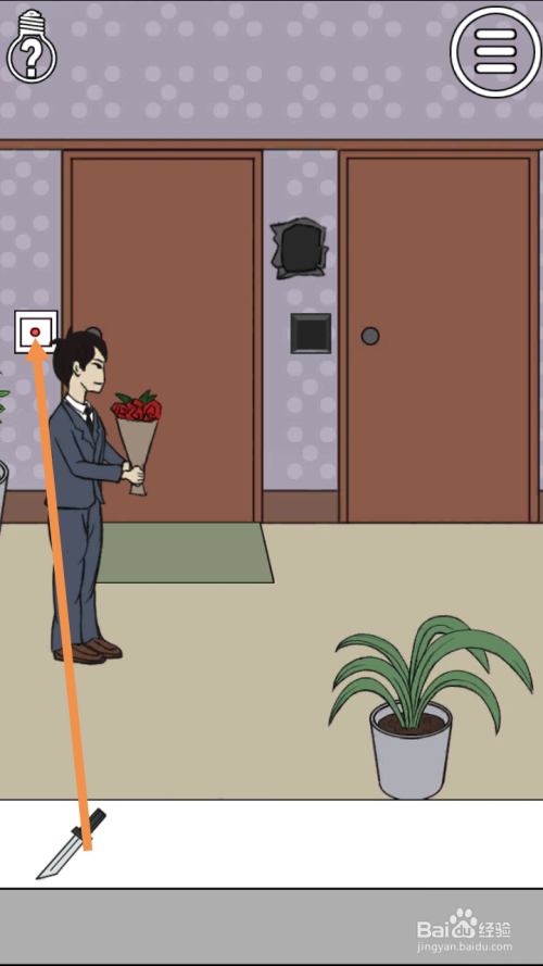 点击小刀,然后将小刀拖动到门铃处。