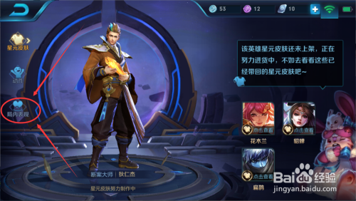 我们来到英雄定制页面之后,我们在英雄定制页面的最左边找到“局内表示 ”按钮,点击打开王者荣耀局内表示页面 。