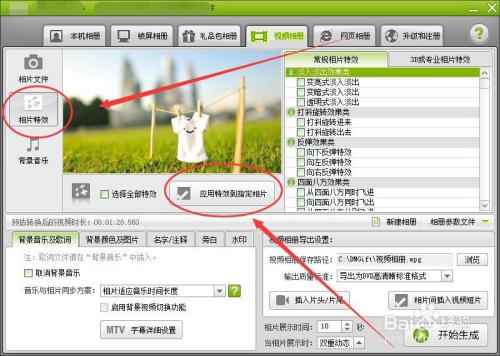 选择相片特效选项卡,单击应用特效到指定相片按钮。