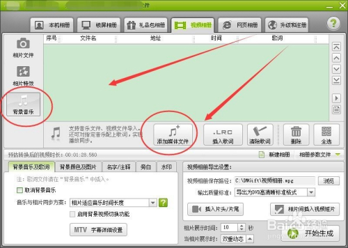 选择布景音乐选项卡,单击添加媒体文件按钮。