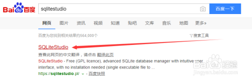 百度搜刮关头字‘sqlitestudio’,如图所示,找到标识表记标帜搜刮成果进行点击;