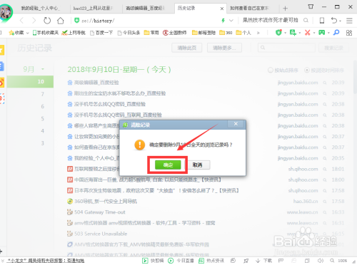 在确认页面,我们单击“确定”后,就可以把浏览器浏览记实清理失落了。
