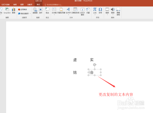 选中插入的文本框文本内容,按住键盘上的辅助键Ctrl键,移动并复制出三个复制文本出来,逐个选中复制的文本框,双击处于文本编纂状况,将文本内容依次改当作分歧的文本。