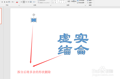 选中第一个“虚”字文本框内容,在开始菜单中,选择一个合适的文本字体,然后设置文本的字体大小,字体的颜色等属性信息。