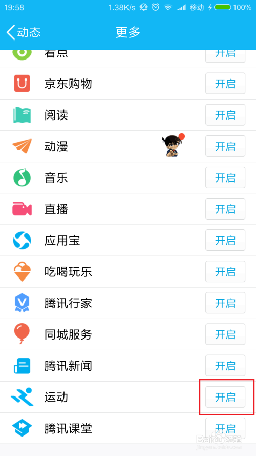接下来,我们返回到手机QQ的动态功能页面,在动态功能页面中点击“开启”按钮,然后即可开启活动功能。