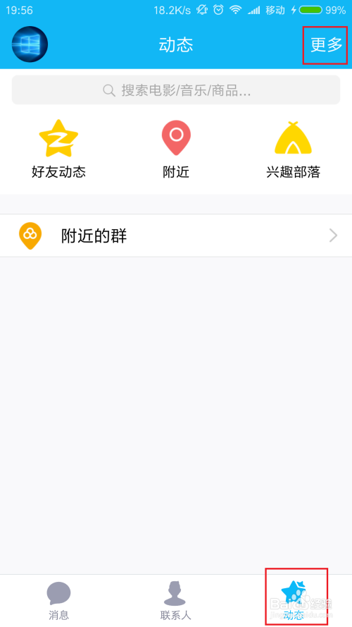 首先,请大师打开手机QQ应用,在手机QQ应用本家儿页面中点击选择“动态”选项页面卡,在动态页面中点击页面右上角的“更多”按钮。