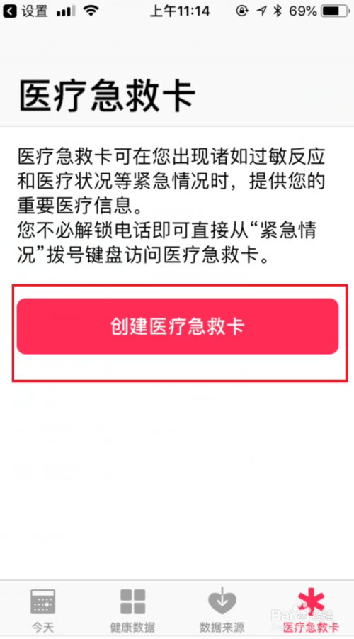 点击进入后,我们选择页面中的“建立医疗急救卡”的选项。
