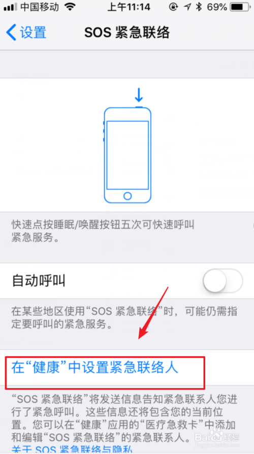 在设置中,经由过程下滑界面,找到“SOS告急联络”的选项进入。