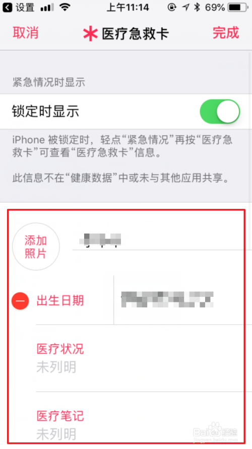 点击后,则进入建立页面,我们可以建立本身的小我医疗信息。好比医疗环境、过敏反映等。