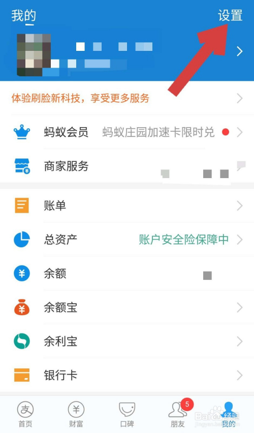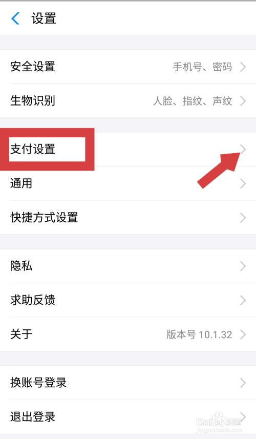 在我的页面,点击右上角的“设置”,进入设置页面,点击第三行“付出设置”后边的“>”进入付出设置页面。